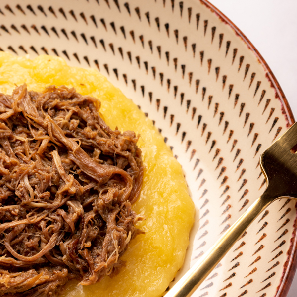Ingredientes: Acém, batata baroa, leite de coco, cebola, alho, sal, páprica defumada e pimenta do reino.